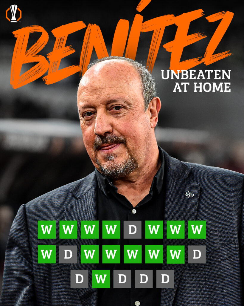 Ο Ράφα Μπενίτεθ διατηρεί ένα εντυπωσιακό αήττητο σερί στα εντός έδρας παιχνίδια του στο Europa League, επιβεβαιώνοντας τη μεγάλη εμπειρία του στις ευρωπαϊκές διοργανώσεις.