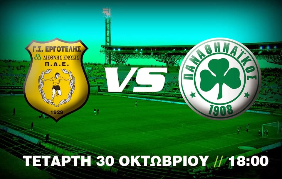 O Παναθηναϊκός φιλοξενείται από τον Εργοτέλη στα πλαίσια της φάσης των “32” του Κυπέλλου Ελλάδας και καλείται να υπερασπιστεί το υπέρ του 2-1 του πρώτου αγώνα της Λεωφόρου.