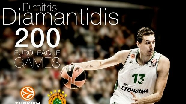 Τις 200 συμμετοχές στην Ευρωλίγκα έφτασε ο αρχηγός του Παναθηναϊκού, Δημήτρης Διαμαντίδης μετά την συμμετοχή του στον αγώνα κόντρα στην Λοκομοτίβ. Πλέον, ο 33χρονος γκαρντ, χρειάζεται άλλα έξι παιχνίδια για να φτάσει τον Σαρούνας Γιασικεβίτσιους στην 10η θέση της σχετικής λίστας. Να σημειώσουμε ότι, στην 7η θέση βρίσκεται ο Μάικ Μπατίστ με 213 συμμετοχές, ενώ ο Κώστας Τσαρτσαρής σταμάτησε στις 239 και την 2η θέση, πίσω από τον πρώτο Θοδωρή Παπαλουκά, που είναι πρώτος σε συμμετοχές με 252.