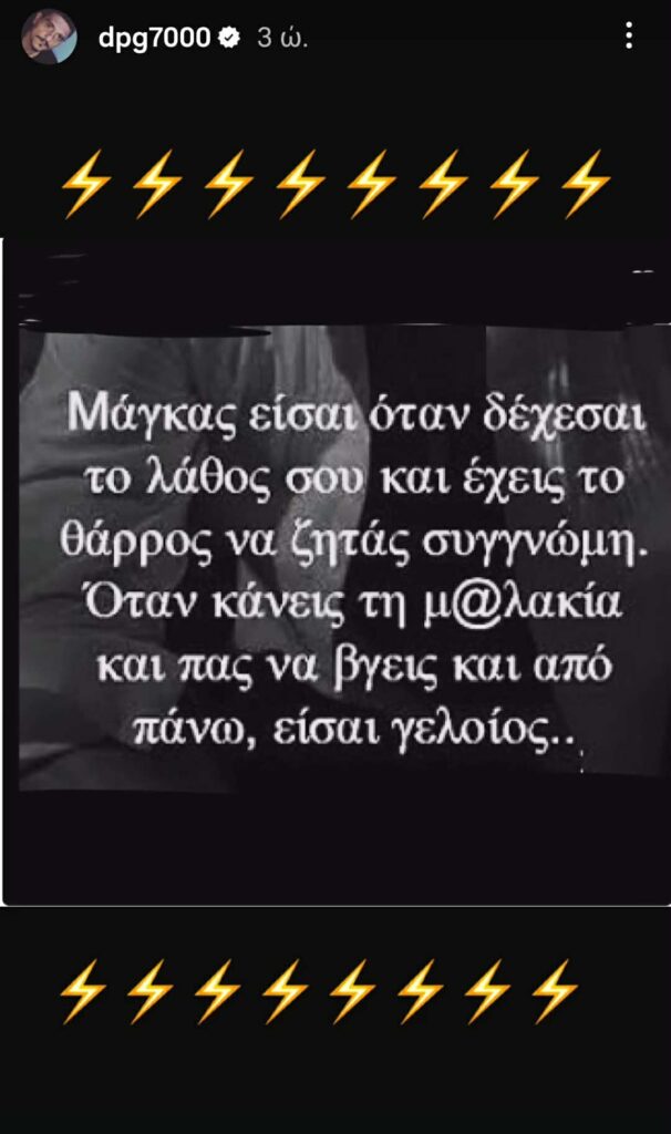 «Μάγκας είσαι όταν δέχεσαι το λάθος σου και έχεις το θάρρος να ζητάς συγγνώμη. Όταν κάνεις τη μ@λ@κία και πας να βγεις και από πάνω, είσαι γελοίος.»