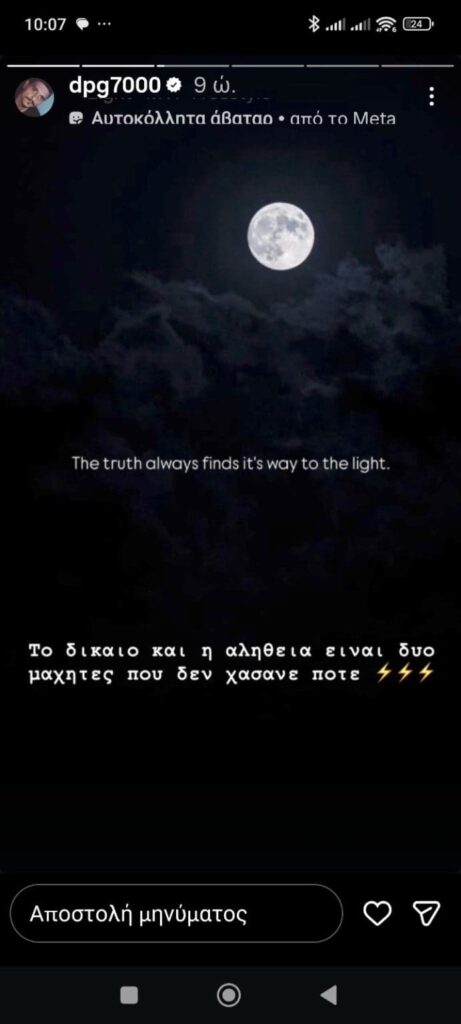 Ο Δημήτρης Γιαννακόπουλος δημοσίευσε story στο Instagram με συμβολικό μήνυμα για το δίκαιο και την αλήθεια.