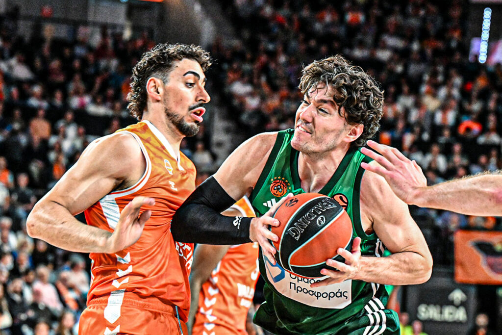 Έπειτα, το τρίτο δεκάλεπτο ξεκίνησε με την εικόνα να μην αλλάζει, με τη Βαλένθια να συνεχίζει να εκτελεί με απίστευτη ευκολία από την περιφέρεια και να κυριαρχεί και στις δεύτερες επιθέσεις. Οι Ισπανοί έβρισκαν τρίποντα με κάθε τρόπο και, σε συνδυασμό με τα επιθετικά ριμπάουντ, διατηρούσαν τον έλεγχο της αναμέτρησης, κρατώντας τη διαφορά στους 9 πόντους (64-55, 24’) στο μέσο της περιόδου. Ο Παναθηναϊκός, ωστόσο, δεν κατέρρευσε. Με αλλεπάλληλα κλεψίματα και μεγαλύτερη ένταση στην άμυνα, οι «πράσινοι» κατάφεραν να βρουν ρυθμό στο τρανζίσιον και να μειώσουν μετά από πολλή ώρα στο -5 (66-61, 27’), επιστρέφοντας ουσιαστικά στο παιχνίδι. Το μομέντουμ έδειχνε να αλλάζει, όμως η συνέχεια ήταν ξανά προβληματική. Στο φινάλε του δεκαλέπτου, η αμυντική λειτουργία του «Τριφυλλιού» κατέρρευσε πλήρως, με τη Βαλένθια να βρίσκει ξανά εύκολους πόντους σε κάθε κατοχή και να εκτοξεύει τη διαφορά στο +13, κλείνοντας την περίοδο στο 82-69.