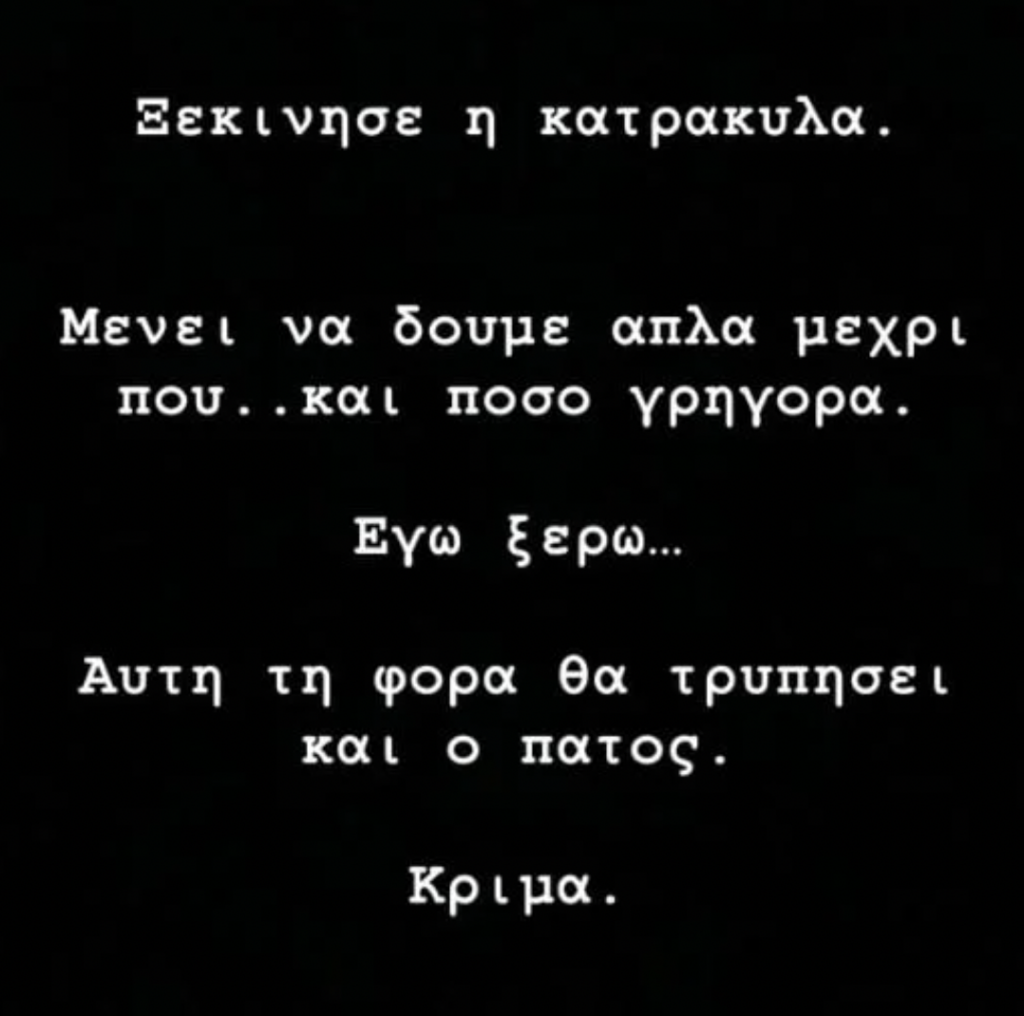 Στο story, ο Δημήτρης Γιαννακόπουλος έγραψε «Ξεκίνησε η κατρακύλα. Μένει να δούμε απλά μέχρι που και πόσο γρήγορα. Εγώ ξέρω… Αυτή τη φορά θα τρυπήσει και ο πάτος. Κρίμα».