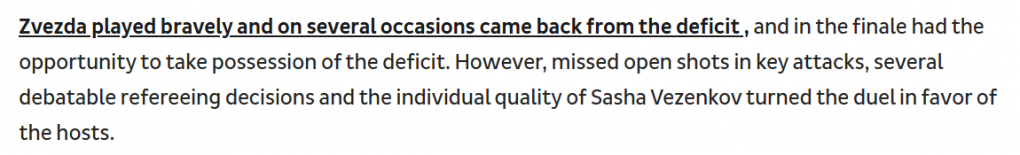 Τα σερβικά ρεπορτάζ επισημαίνουν ότι ακόμη και μετά την εξέταση του instant replay η απόφαση δεν άλλαξε, τονίζοντας πως οι συγκεκριμένες στιγμές επηρέασαν τη ροή και τη δυναμική του αγώνα. Άλλα μέσα στάθηκαν συνολικά στην εικόνα της διαιτησίας, κάνοντας λόγο για «αμφισβητούμενα σφυρίγματα» που έγειραν την πλάστιγγα υπέρ των γηπεδούχων.