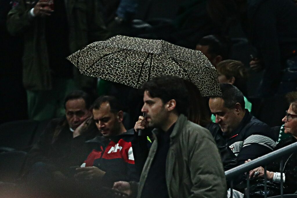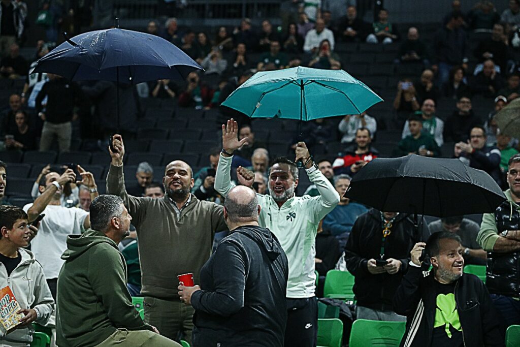 Μια από τις πιο απολαυστικές στιγμές της βραδιάς στο ΟΑΚΑ χάρισαν μια παρέα οπαδών του Παναθηναϊκού, οι οποίοι έφτασαν στο γήπεδο… εξοπλισμένοι με ομπρέλες! Οι φίλοι του «Τριφυλλιού» στάθηκαν στις εξέδρες με τις ομπρέλες ανοιχτές, σε ένα… ΕΠΙΚΟ τρολάρισμα προς τον Ολυμπιακό, του οποίου ο προγραμματισμένος για την Πέμπτη (4/12) αγώνας ματαιώθηκε επειδή το κλειστό του ΣΕΦ… μπάζει νερά.