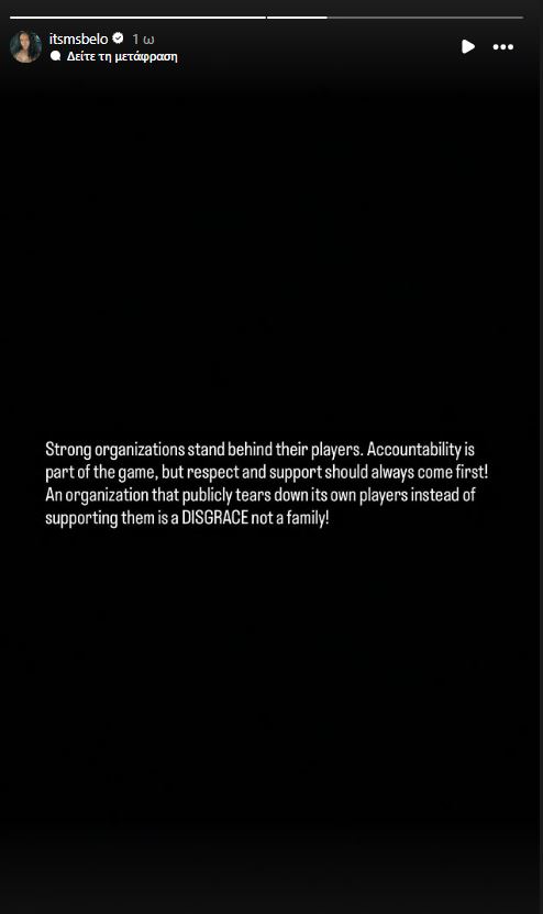 «Οι ισχυροί οργανισμοί στέκονται πίσω από τους παίκτες τους. Η λογοδοσία είναι μέρος του παιχνιδιού, όμως ο σεβασμός και η υποστήριξη πρέπει πάντα να έρχονται πρώτα. Ένας οργανισμός που δημόσια υπονομεύει και κατακρίνει τους ίδιους του τους παίκτες αντί να τους στηρίζει είναι ΝΤΡΟΠΗ, όχι οικογένεια!».