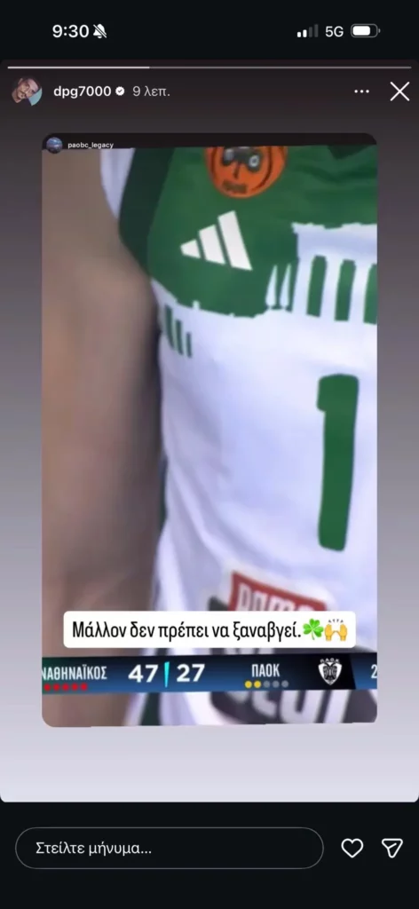 Ο Δημήτρης Γιαννακόπουλος μέσω Instagram story αναφέρθηκε στην φανέλα με την Ακρόπολη.