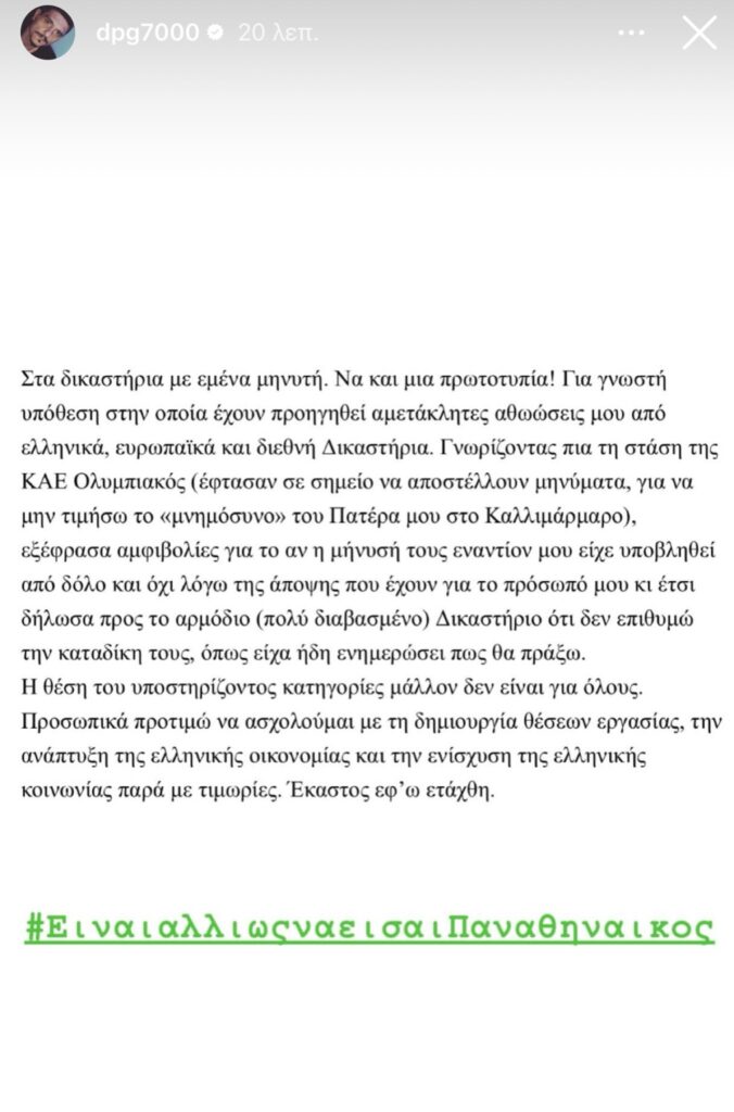Η έγγραφη δήλωση του ιδιοκτήτη της ΚΑΕ Παναθηναϊκός και το μήνυμα που έστειλε μέσω Instagram.