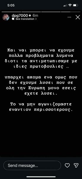 Ο ιδιοκτήτης της «πράσινης» ΚΑΕ συνέχισε τις παρεμβάσεις του αυτή τη φορά μέσω story, σχολιάζοντας τις δηλώσεις του Γιώργου Αγγελόπουλου μετά την ολοκλήρωση της αναμέτρησης.