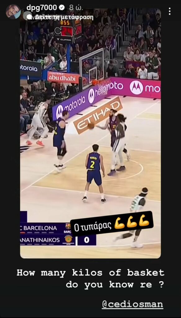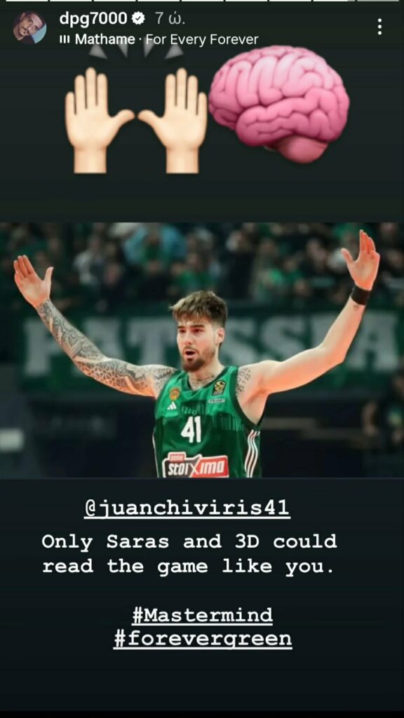 Με τρία stories στο Instagram, ο Δημήτρης Γιαννακόπουλος αποθέωσε Όσμαν, Σλούκα και Χουάντσο μετά την εμφάνισή τους.