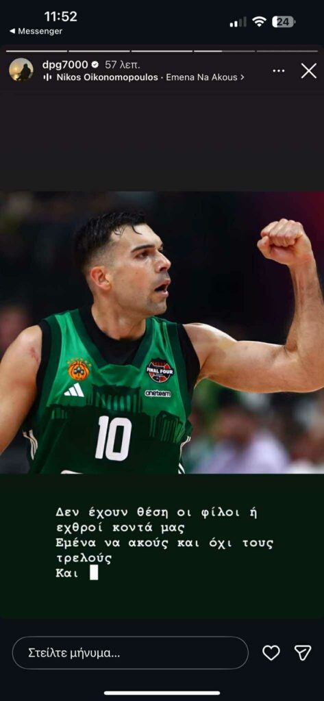 Ο Δημήτρης Γιαννακόπουλος δεν άφησε αναπάντητο τη μεγάλη νίκη του Παναθηναϊκού μέσα στην Κωνσταντινούπολη απέναντι στην Εφές, με τον διοικητικό ηγέτη των «πράσινων» να στέλνει το δικό του μήνυμα αμέσως μετά το τέλος της αναμέτρησης.