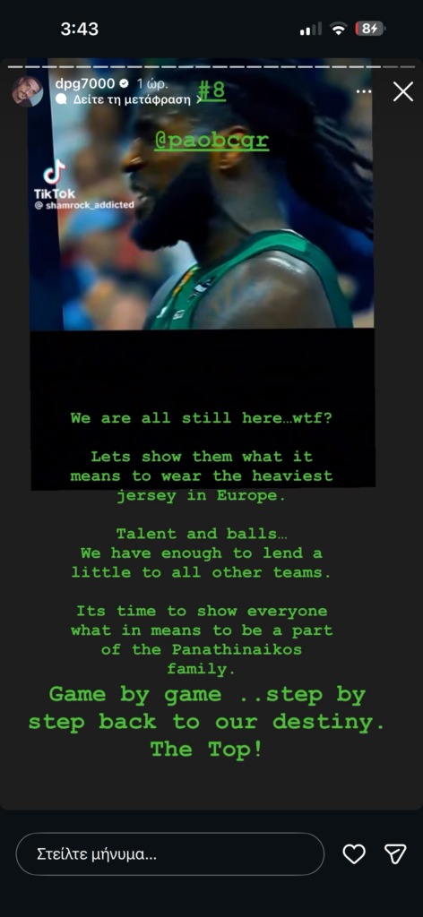 Σαφής και απόλυτος εμφανίστηκε ο Δημήτρης Γιαννακόπουλος μέσα από νέο Instagram story, στέλνοντας μήνυμα πίστης και συσπείρωσης, παρά τα αρνητικά αποτελέσματα των τελευταίων ημερών.