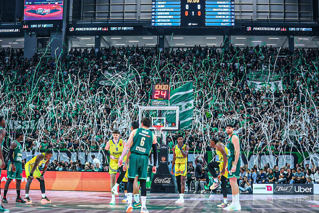 Αρχικά, το ξεκίνημα του αγώνα έδειχνε να προμηνύει μια άνετη βραδιά. Οι «πράσινοι» μπήκαν με ενέργεια και καθαρό μυαλό, χτυπώντας τόσο μέσα από τη ρακέτα όσο και από τα 6.75. Ο Τζεντί Οσμάν με πέντε γρήγορους πόντους, ο Κέντρικ Ναν με επιθετική διάθεση και ο Ομέρ Γιούρτσεβεν με έξυπνες κινήσεις κοντά στο καλάθι, έφεραν τον «Επτάστερο» στο 15-9 στο 5’. Το μομέντουμ παρέμενε στα «πράσινα» χέρια, καθώς ο Οσμάν συνέχισε να βλέπει το καλάθι σαν… βαρέλι, φτάνοντας τους 10 πόντους και ανεβάζοντας τη διαφορά στο +8 (22-14, 7’). Ωστόσο, μέσα σε δύο λεπτά, η ομάδα του Εργκίν Αταμάν εμφάνισε ξανά παιδικές ασθένειες. Αβίαστα λάθη, ασυνεννοησία στην άμυνα και κακές επιλογές στην επίθεση έδωσαν τη δυνατότητα στους Ισραηλινούς να «τρέξουν» επιμέρους 11-2 και να κλείσουν την περίοδο με 24-25, ύστερα μάλιστα από ένα απίθανο buzzer beater πίσω από το κέντρο από τον Κλαρκ.