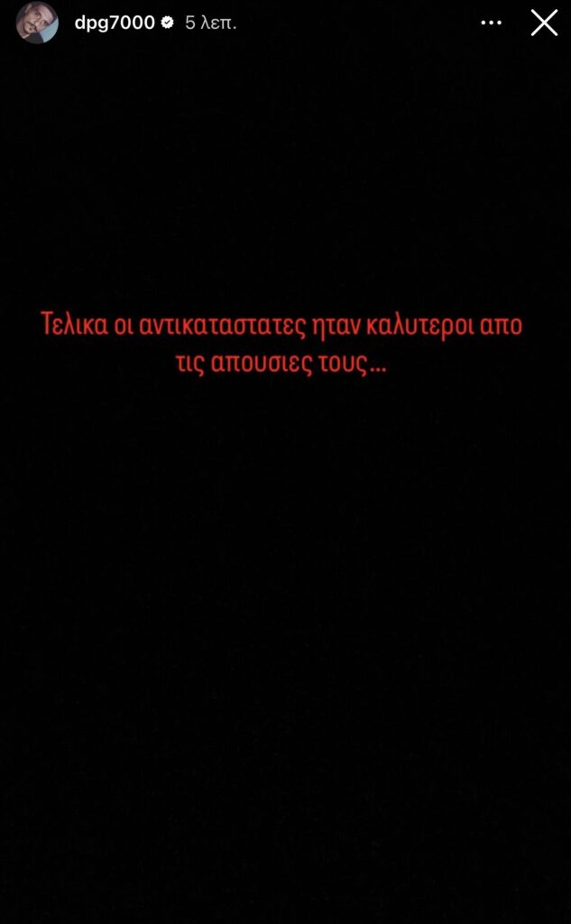 Συγκεκριμένα, ο διοικητικός ηγέτης των «πράσινων» έγραψε: «Τελικά οι αντικαταστάτες ήταν καλύτεροι από τις απουσίες τους…». Με τη φράση αυτή άφησε ξεκάθαρα υπονοούμενα για τη διαιτησία της αναμέτρησης, εκφράζοντας τη δυσαρέσκειά του για τα σφυρίγματα που σημάδεψαν το παιχνίδι στο φαληρικό γήπεδο.