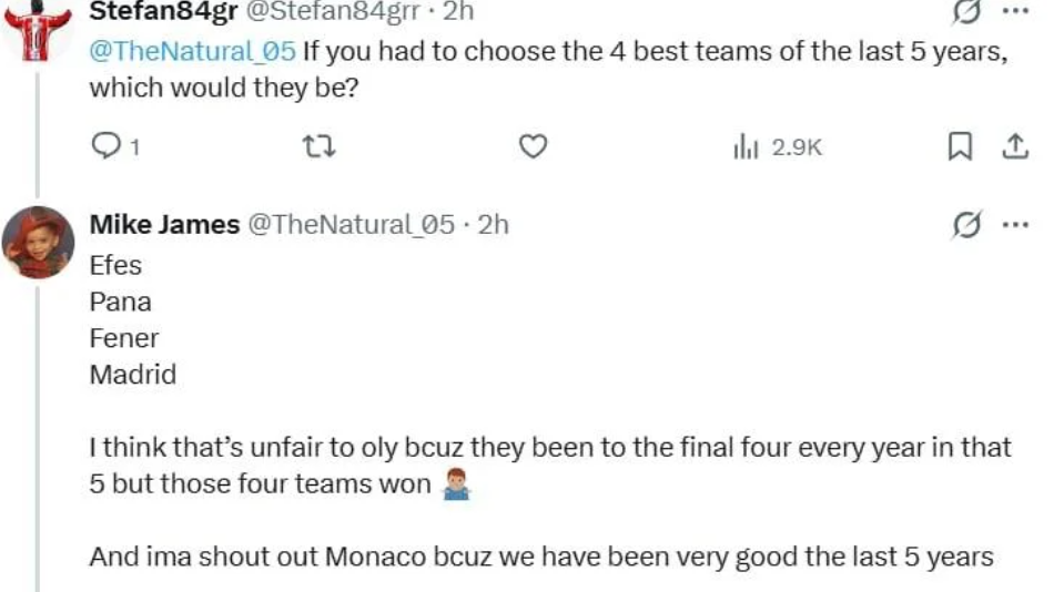 Αρκετές αντιδράσεις προκάλεσε η τοποθέτηση του Μάικ Τζέιμς, ο οποίος μέσα από τον προσωπικό του λογαριασμό στο Χ επέλεξε να καταθέσει τη δική του άποψη για τις κορυφαίες ομάδες της EuroLeague την τελευταία πενταετία.