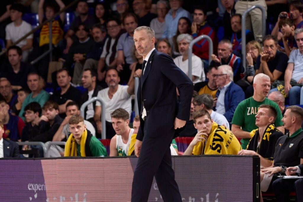 Ικανοποιημένος από την αντίδραση της Ζαλγκίρις ο Λιθουανός τεχνικός μετά τη νίκη επί της Παρτιζάν.