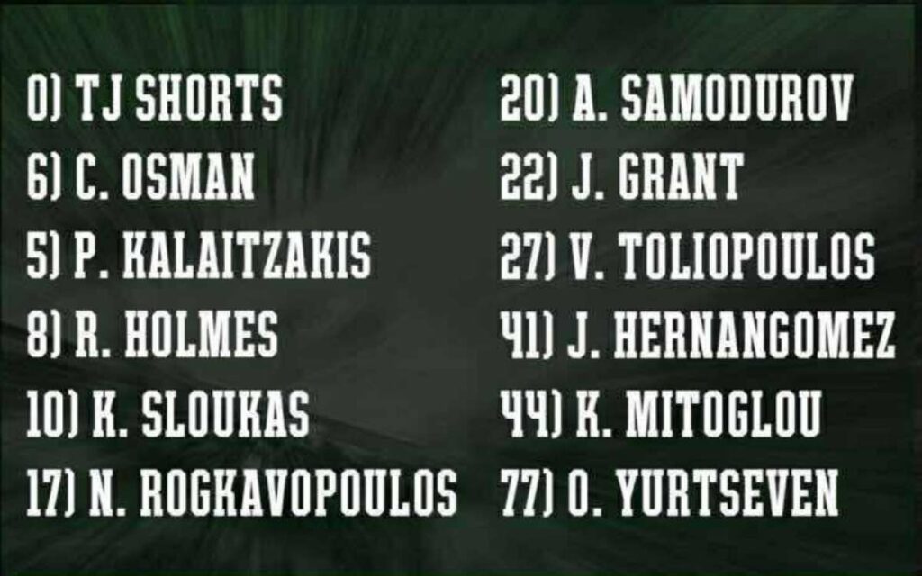Εκτός εξάδας έμεινε και ο Μάριους Γκριγκόνις, που συνεχίζει να αναζητά ρυθμό και φυσική κατάσταση έπειτα από σχεδόν έναν χρόνο αποχής λόγω τραυματισμού στη μέση. Ο Λιθουανός έχει επανέλθει στη δράση, ωστόσο ακόμη δεν βρίσκεται στο επιθυμητό επίπεδο για παιχνίδι τέτοιας έντασης.