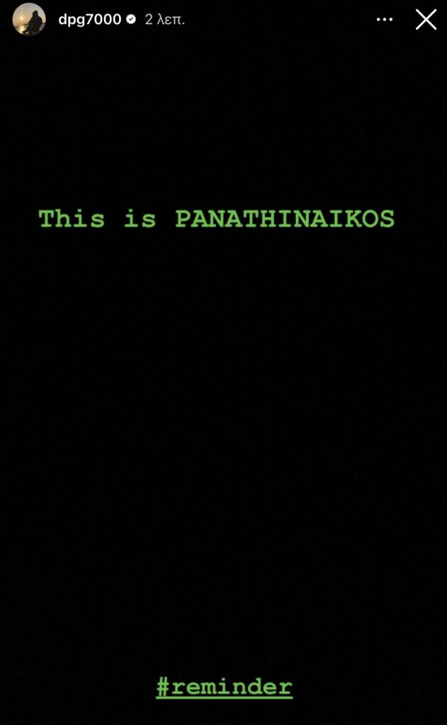 Την πρώτη του αντίδραση μετά την ήττα του Παναθηναϊκού από τον Ερυθρό Αστέρα στο Βελιγράδι έκανε ο Δημήτρης Γιαννακόπουλος. Ο διοικητικός ηγέτης του «Τριφυλλιού» ανάρτησε στα μέσα κοινωνικής δικτύωσης τη φράση «This is PANATHINAIKOS», ενώ λίγο παρακάτω συμπλήρωσε και ολοκλήρωσε με: «reminder», στέλνοντας μήνυμα υπερηφάνειας και πίστης προς την ομάδα, παρά το αρνητικό αποτέλεσμα.