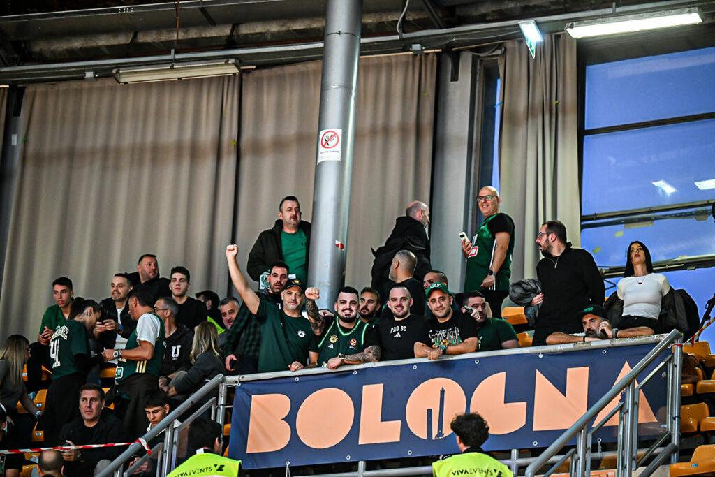 Παρά τους περιορισμούς στα εισιτήρια, η «πράσινη» ψυχή έκανε και πάλι την εμφάνισή της στην Ιταλία! Περισσότεροι από 150 φίλοι του Παναθηναϊκού βρέθηκαν στις εξέδρες της Segafredo Arena για να στηρίξουν την ομάδα του Εργκίν Αταμάν στο παιχνίδι με τη Βίρτους Μπολόνια για την 6η αγωνιστική της EuroLeague.