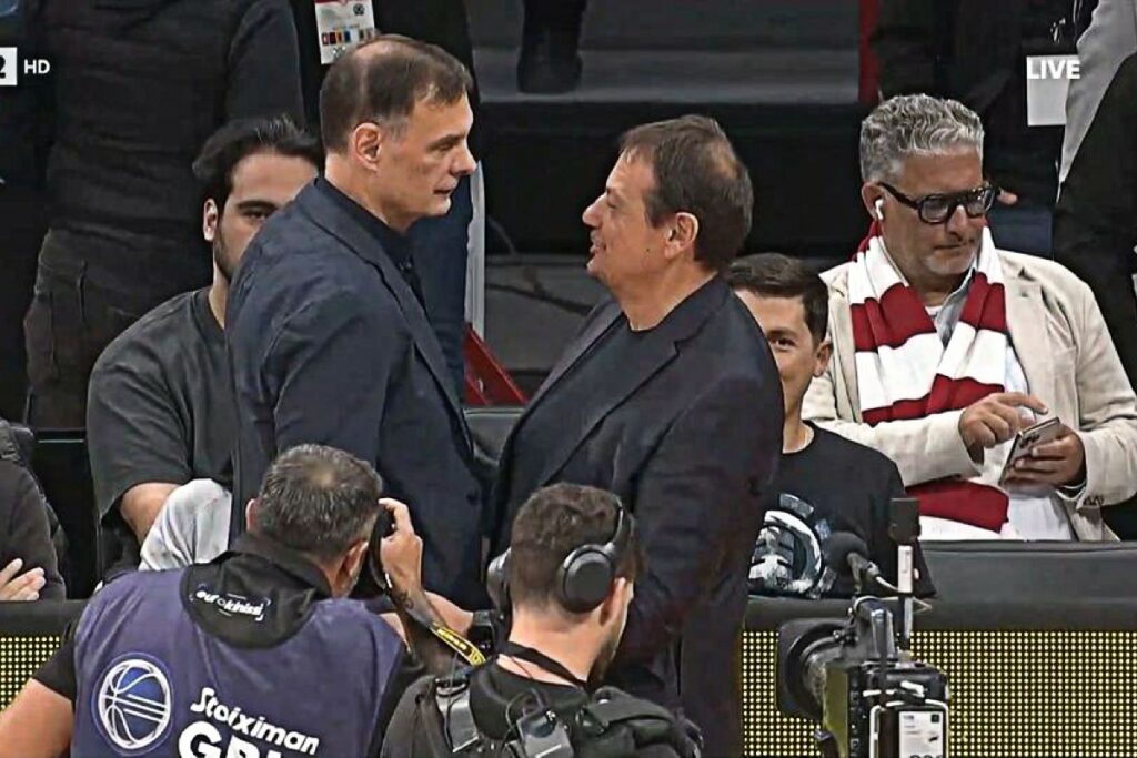 Μια όμορφη στιγμή εκτυλίχθηκε λίγο πριν το τζάμπολ του ντέρμπι ανάμεσα σε Ολυμπιακό και Παναθηναϊκό, καθώς οι δύο προπονητές, Εργκίν Αταμάν και Γιώργος Μπαρτζώκας, συναντήθηκαν στο κέντρο του ΣΕΦ και αντάλλαξαν έναν θερμό χαιρετισμό. Παρά το έντονο κλίμα και την πίεση που συνοδεύει πάντα μια τέτοια αναμέτρηση, οι δύο τεχνικοί έδειξαν αμοιβαίο σεβασμό και αθλητικό πνεύμα.