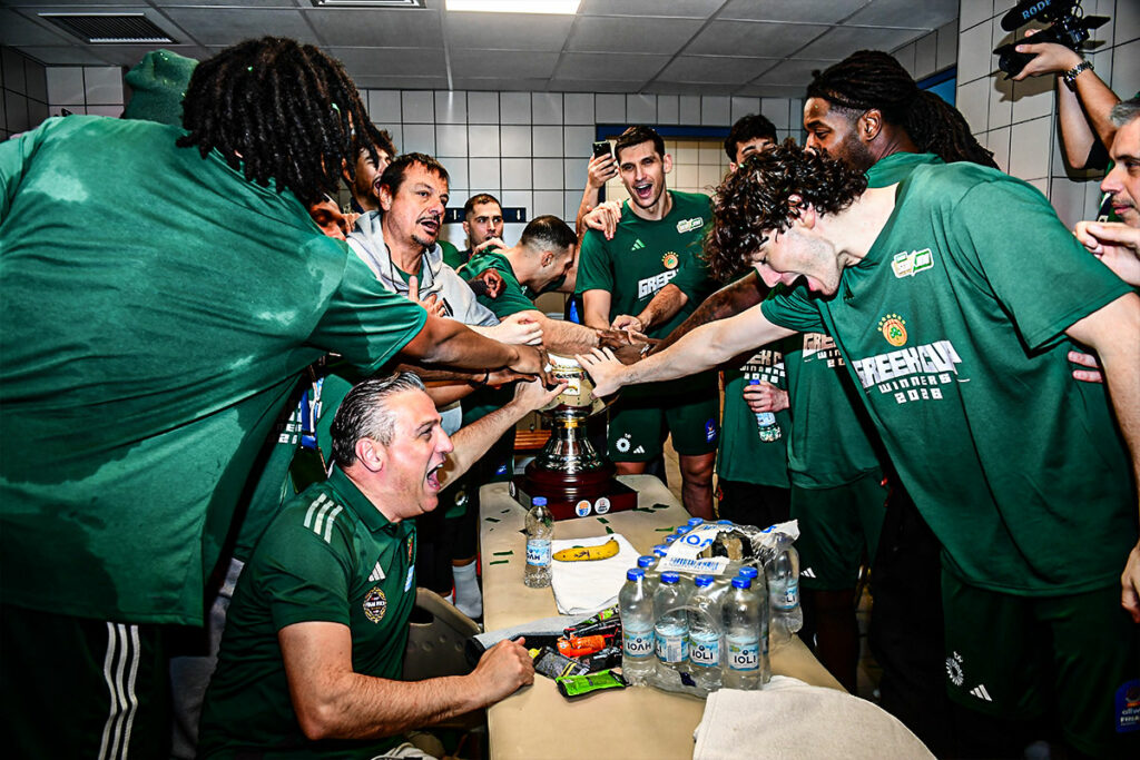Αμέσως μετά την κατάκτηση του Κυπέλλου Ελλάδας, τα αποδυτήρια του Παναθηναϊκού μετατράπηκαν σε σκηνικό ξέφρενων πανηγυρισμών. Φωνές, συνθήματα και χαμόγελα κυριάρχησαν, με τους παίκτες να γίνονται ένα κουβάρι χαράς, αποτυπώνοντας την ένταση και την πίεση που είχε προηγηθεί μέχρι να φτάσει το «Τριφύλλι» στην κορυφή. Η αίσθηση δικαίωσης ήταν διάχυτη, σε μια διοργάνωση που είχε απαιτήσεις από το πρώτο μέχρι το τελευταίο λεπτό.
