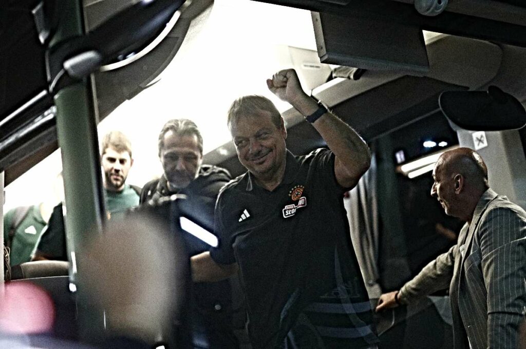 Ο Εργκίν Αταμάν, φανερά ευδιάθετος, ανταπέδωσε τον χαιρετισμό, την ώρα που το πούλμαν αποχωρούσε εν μέσω αποθέωσης για τα «Δύο Αοράκια».