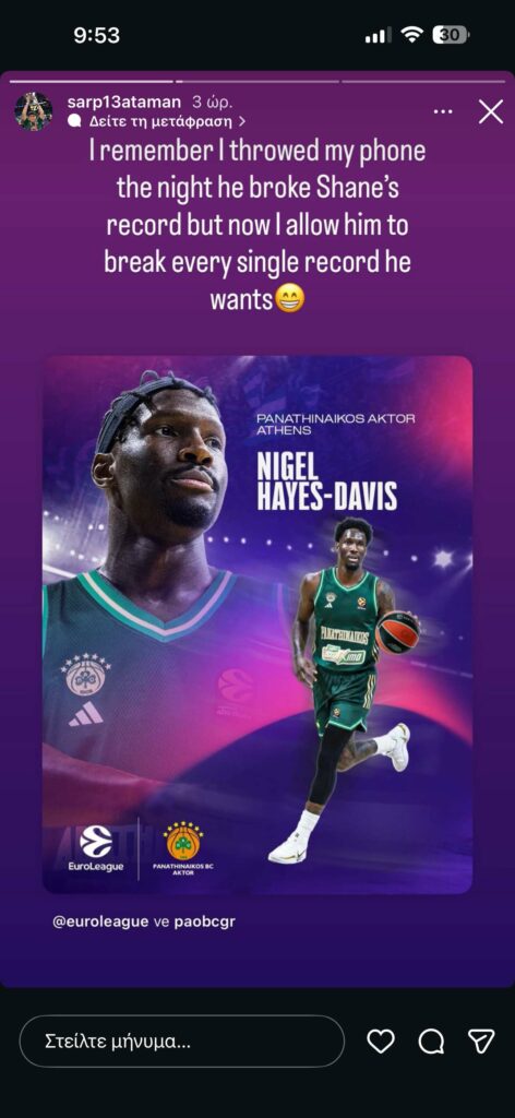 Η μεταγραφή του Νάιτζελ Χέις-Ντέιβις στον Παναθηναϊκό AKTOR δεν προκάλεσε ενθουσιασμό μόνο στον κόσμο της ομάδας, αλλά και στο περιβάλλον του Εργκίν Αταμάν.