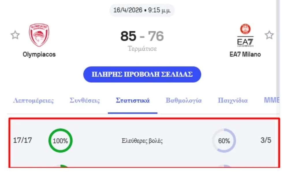 Ο Ολυμπιακός επικράτησε της Αρμάνι Μιλάνο στο ΣΕΦ, σε ένα παιχνίδι που πέρα από το αγωνιστικό κομμάτι άφησε έντονο απόηχο γύρω από τη διαιτησία.
