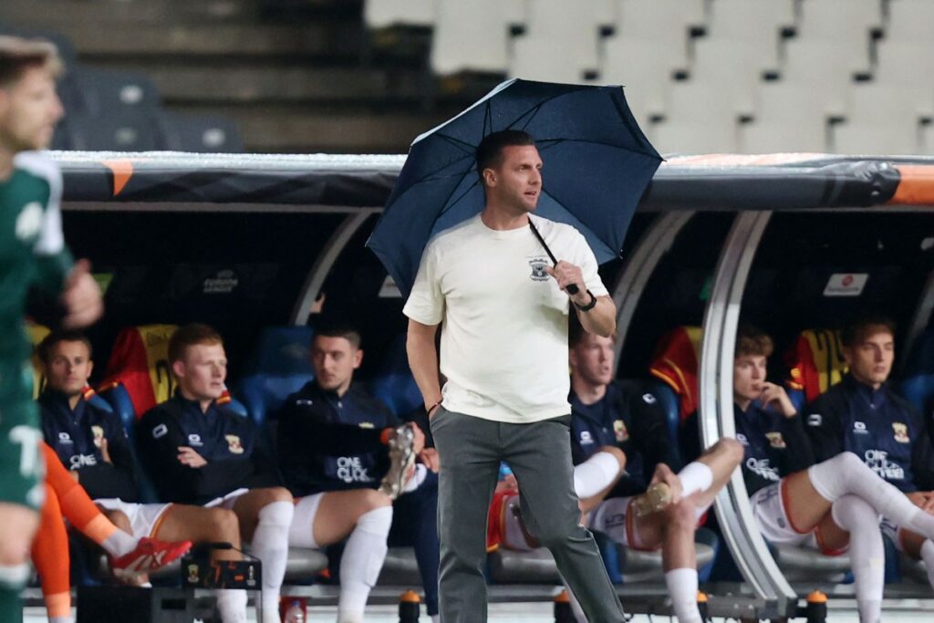 Η αναμέτρηση του Παναθηναϊκού με την Γκόου Αχέντ Ίγκλς στο ΟΑΚΑ είχε το δικό της… ιδιαίτερο στιγμιότυπο, το οποίο έκλεψε την παράσταση. Με το που ξεκίνησε να βρέχει στα πρώτα λεπτά του αγώνα, ο προπονητής των φιλοξενούμενων, Μέλβιν Μπόελ, έβγαλε την ομπρέλα του και στάθηκε όρθιος στη γραμμή, παρακολουθώντας έτσι την εξέλιξη της αναμέτρησης.
