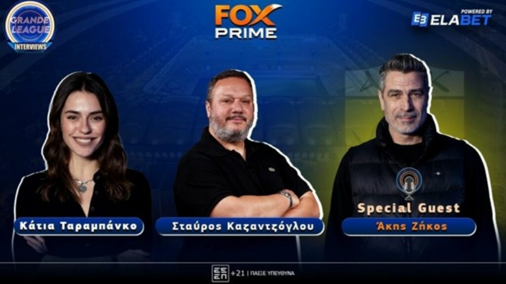 Το GrandeLeague Interviews, powered by ELABET φιλοξενεί τον Άκη Ζήκο, σε μια αποκαλυπτική συζήτηση με τον Σταύρο Καζαντζόγλου και την Κάτια Ταραμπάνκο στο κανάλι του FoxPrime.