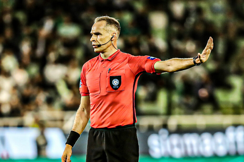 Ο καθηγητής διαιτησίας στάθηκε σε μία φάση στο χώρο του κέντρου μετά το 2-0 του Παναθηναϊκού απέναντι στην ομάδα της Τρίπολης.