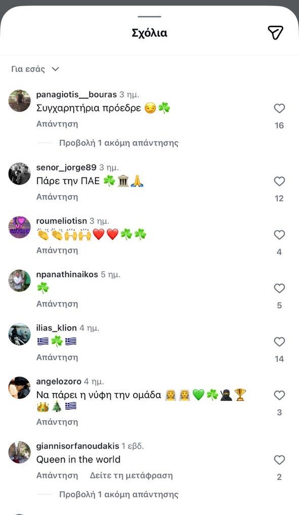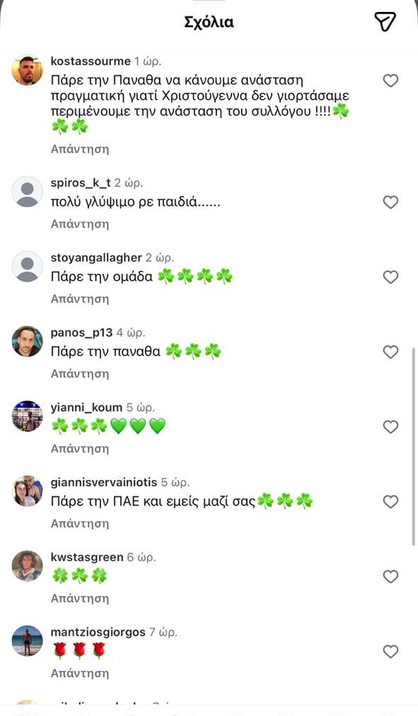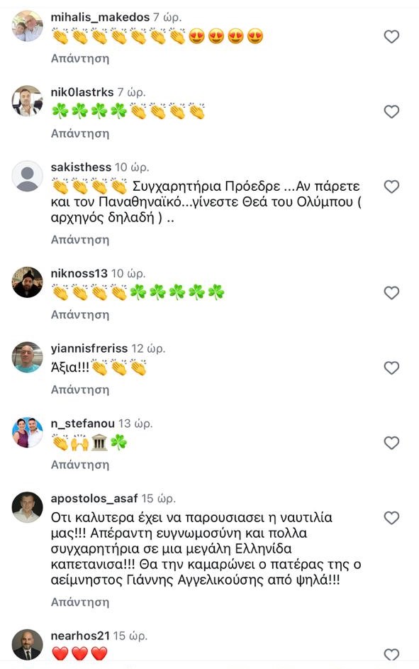 Με αφορμή αυτή την ανάρτηση οι φίλοι του Παναθηναϊκού «κατέκλεισαν» τον λογαριασμό της και τα σχόλια κάτω από την ανάρτηση πήραν… «φωτιά».