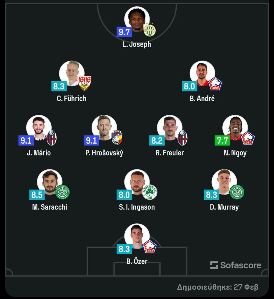 Με τέτοια απόδοση, ο Ίνγκασον δεν θα μπορούσε να περάσει απαρατήρητος. Η εξαιρετική του εμφάνιση του χάρισε θέση στην καλύτερη ενδεκάδα της αγωνιστικής στο Europa League, επιβραβεύοντας τον καθοριστικό του ρόλο στην ευρωπαϊκή βραδιά των «πράσινων».