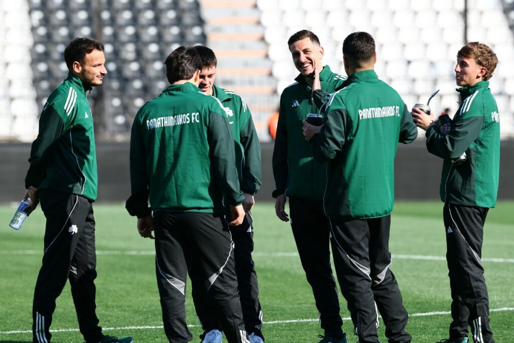 Αρχικά, οι ποδοσφαιριστές του Παναθηναϊκού περπάτησαν στον αγωνιστικό χώρο, συζητώντας μεταξύ τους σε χαλαρό κλίμα. Το τεχνικό επιτελείο παρακολουθούσε τις τελευταίες λεπτομέρειες, με τη διαδικασία να κυλά όπως προβλέπεται πριν από την προθέρμανση. Στη συνέχεια, οι «πράσινοι» πήραν θέση και στον πάγκο, με στιγμές χαλάρωσης αλλά και συγκέντρωσης να εναλλάσσονται, καθώς το παιχνίδι πλησιάζει.