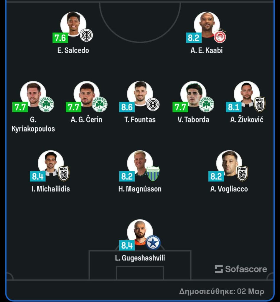 Τρεις ποδοσφαιριστές του Παναθηναϊκού ξεχώρισαν με την παρουσία τους στην τελευταία αγωνιστική της Stoiximan Super League, πραγματοποιώντας γεμάτες εμφανίσεις που αποτυπώθηκαν και στις αξιολογήσεις τους (7.7) με βάση τα στατιστικά του sofascore. Ο λόγος για τους Γιώργο Κυριακόπουλο, Άνταμ Γκνέζντα Τσέριν και Βισέντε Ταμπόρδα, οι οποίοι αποτέλεσαν σημεία αναφοράς στο παιχνίδι των «πράσινων».