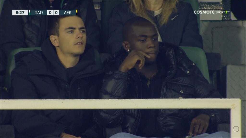 Ο διεθνής επιθετικός εντοπίστηκε από την τηλεοπτική κάμερα κατά τη διάρκεια του ντέρμπι με την ΑΕΚ.