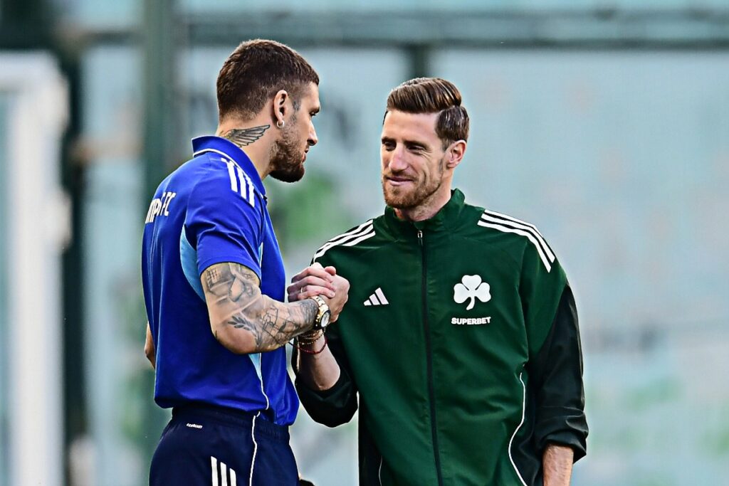Παράλληλα, δεν έλειψαν και τα πρώτα «πηγαδάκια» ανάμεσα σε ποδοσφαιριστές των δύο ομάδων. Ο Γιώργος Κυριακόπουλος είχε μια σύντομη συνομιλία με τον Αλέξανδρο Πασχαλάκη, σε ένα τετ α τετ που έδειξε τον αμοιβαίο σεβασμό, αλλά και τη γνώριμη σχέση μεταξύ των δύο. Την ίδια στιγμή, ο Μίλος Πάντοβιτς τα είπε με τον Ντούσαν Κοβάσεβιτς, σε μια σκηνή που επίσης τράβηξε τα βλέμματα, λίγο πριν οι παίκτες επιστρέψουν στις υποχρεώσεις τους.