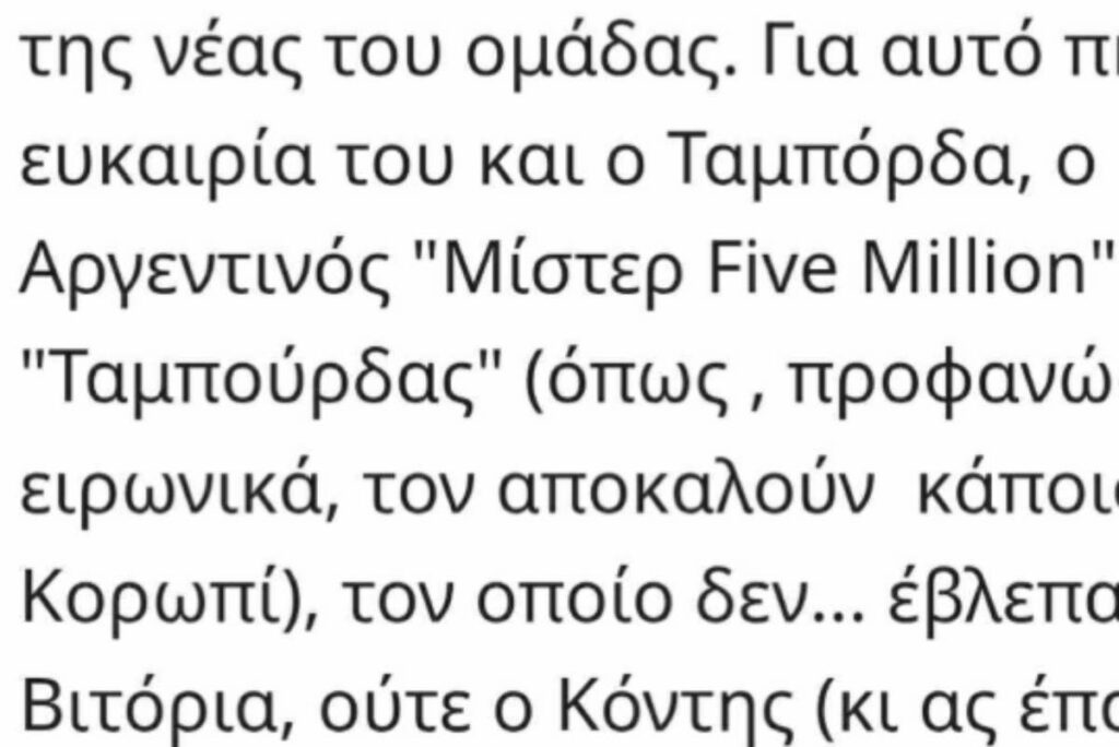 Απαράδεκτο και προσβλητικό το σχόλιο που δημοσιεύτηκε σε αθλητικό μέσο, με ειρωνική αναφορά στον Αργεντινό του Παναθηναϊκού, Βιθέντε Ταμπόρδα, ως «Ταμπούρδα».