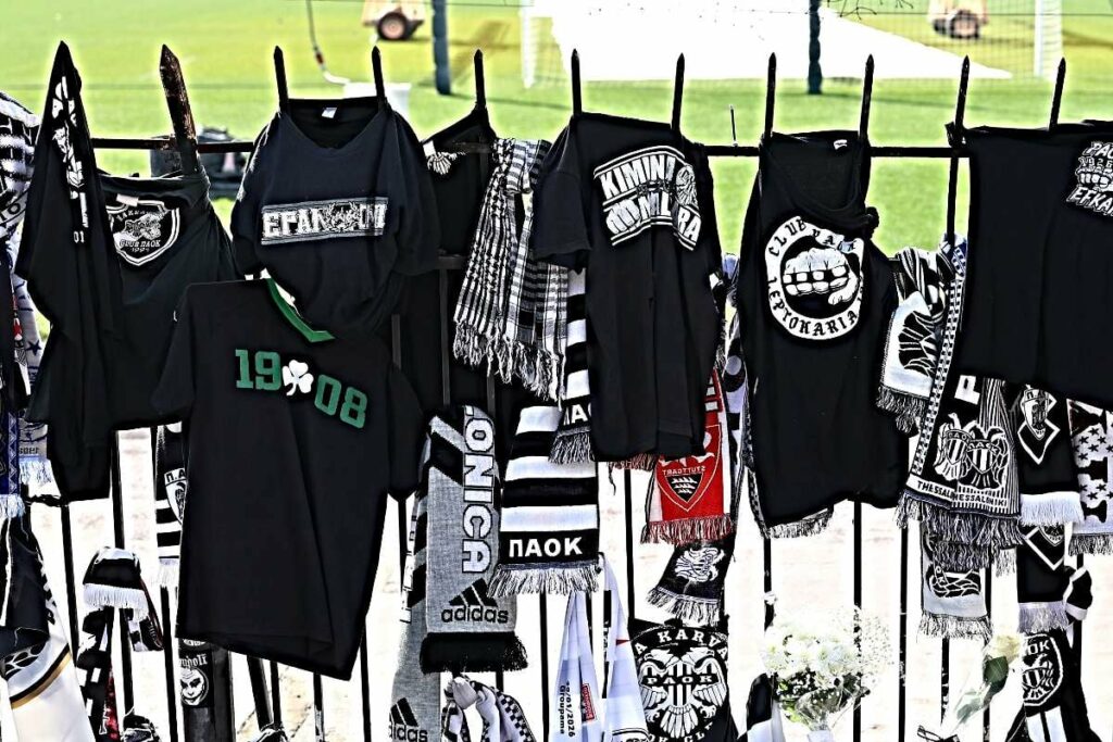 Σε αυτό το κλίμα, ξεχώρισε ακόμη μία συμβολική και ιδιαίτερα συγκινητική κίνηση. Το μεσημέρι της Τετάρτης (28/1), φίλαθλος του Παναθηναϊκός βρέθηκε στην Τούμπα, προκειμένου να αποτίσει φόρο τιμής στα θύματα της τραγωδίας. Εκεί, δίπλα στα κασκόλ και τις φανέλες του ΠΑΟΚ που είχαν τοποθετηθεί στη Θύρα 4, πρόσθεσε και μία φανέλα του Παναθηναϊκού, στέλνοντας ένα ισχυρό μήνυμα ανθρωπιάς και ενότητας.