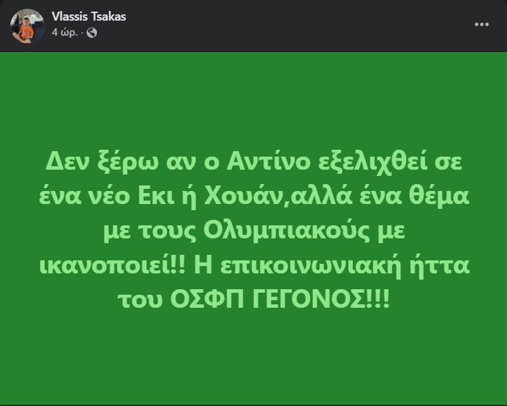 Τσάκας για Αντίνο: «ΓΕΓΟΝΟΣ η ήττα του ΟΣΦΠ! - Δεν ξέρω αν θα είναι ο νέος Έκι» (pic) - Όλα Πράσινα