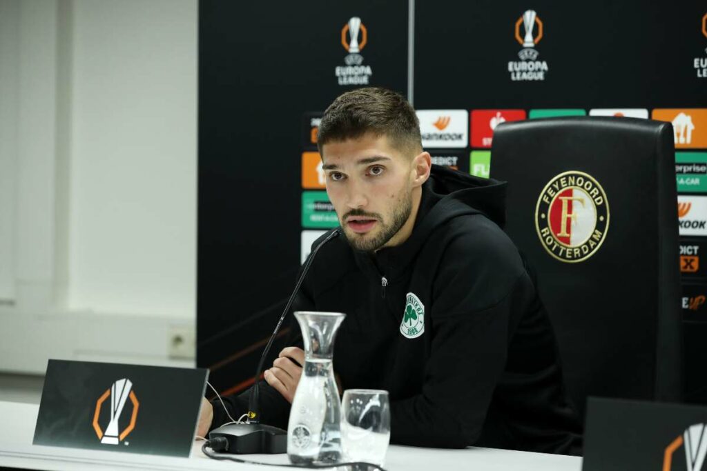 Για το πως πρέπει να αντιμετωπίσει την Φέγενορντ: «Δεν ξεκίνησαν καλά στην διοργάνωση, ωστόσο στο πρωτάθλημα είναι πρωτοπόροι. Στο προηγούμενο ματς κέρδισαν με 7-0. Είναι πολύ νέα ομάδα, ποιοτική. Εμείς πρέπει να φανούμε συμπαγείς και να μην αφήσουμε χώρος, γιατί αν βρουν χώρους, μπορούν να σε τιμωρήσουν. Θεωρώ πως έχουμε αρκετή ποιότητα για να παίξουμε αντίπαλοι σε τέτοιες ομάδες και να πάρουμε βαθμούς».