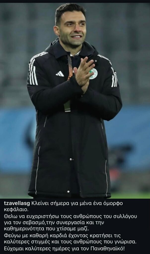 «Κλείνει σήμερα για μένα ένα όμορφο κεφάλαιο. Θέλω να ευχαριστήσω τους ανθρώπους του συλλόγου για τον σεβασμό, τη συνεργασία και την καθημερινότητα που χτίσαμε μαζί. Φεύγω με καθαρή καρδιά έχοντας κρατήσει τις καλύτερες στιγμές και τους ανθρώπους που γνώρισα. Εύχομαι καλύτερες ημέρες για τον Παναθηναϊκό».