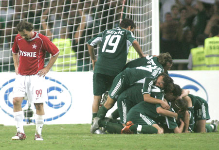 Σαν σήμερα πριν από 8 χρόνια ο Παναθηναϊκός προκρίθηκε επί της Βίσλα Κρακοβίας στους ομίλους του Champions League μετά από μεγάλη νίκη στην παράταση με τελικό σκορ 4-1. Παρόλο που στον πρώτο αγώνα το “Τριφύλλι” είχε ηττηθεί με 3-1 εκτός έδρας από τους Πολωνούς, οι παίχτες του Αλμπέρτο Μαλεζάνι βρήκαν τα ψυχικά αποθέματα και με μια εκπληκτική εμφάνιση στο δεύτερο ημίχρονο πήραν την πρόκριση.
